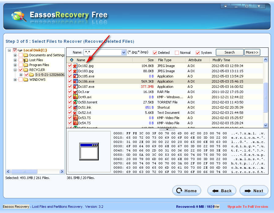 To recover files with Erassos you’re gonna have to go through a simple 5 step wizard. In this presentation we’ve deleted the following files from the Recycle Bin: