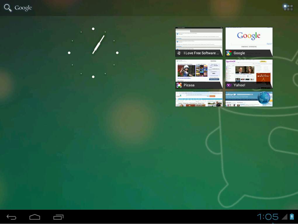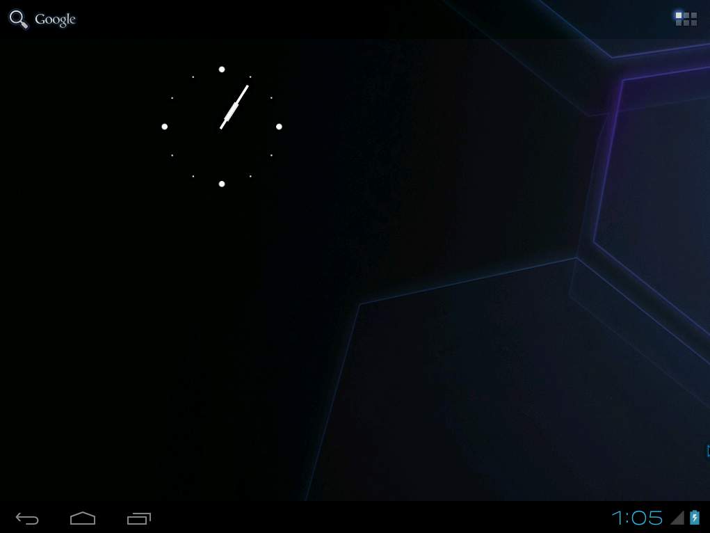 Image above is what you will see when you first run Android 4 ICS. If you decide to test Android yourself using the pre-made VirtualBox image, when you first run the Android you might discover that you can’t unlock the screen. That happened to us and a restart helped. Interface looks pretty scarce, but everything that you need is there. Top right corner is the menu, signal, network and battery information at the lower right corner and there’s also a clock in the middle of the screen and access to Google search at the upper left corner.