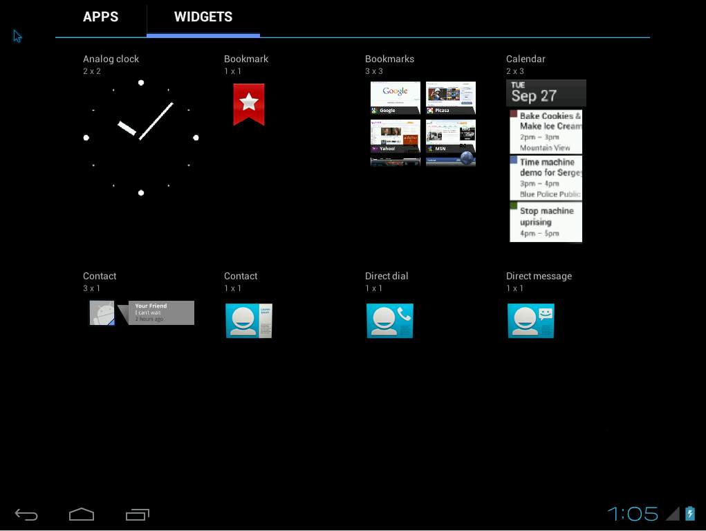 Clock that you see on the main window is a widget, and it will be possible to add new widgets by simply touch&hold them, which will allow you to place them somewhere on the screen.
